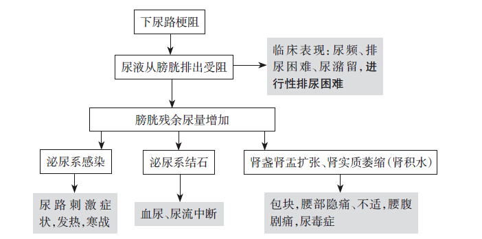 梗阻发生在膀胱及其以下 |