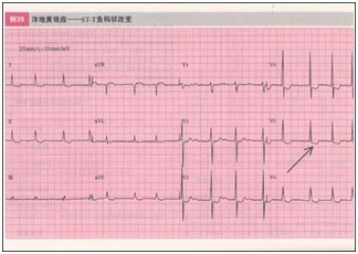 卫人网护士专家答疑:ST段呈现鱼钩样改变,就是R波降支在趋紧基线时候逐渐增粗,其降支在达基线后表现为和缓的向下弯曲,ST段下凹的同时轻度压低,该图形可见于大多数洋地黄化患者的心电图中。详见下图
