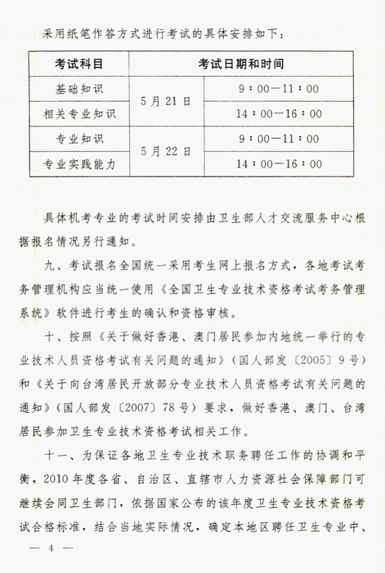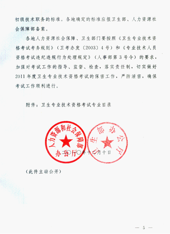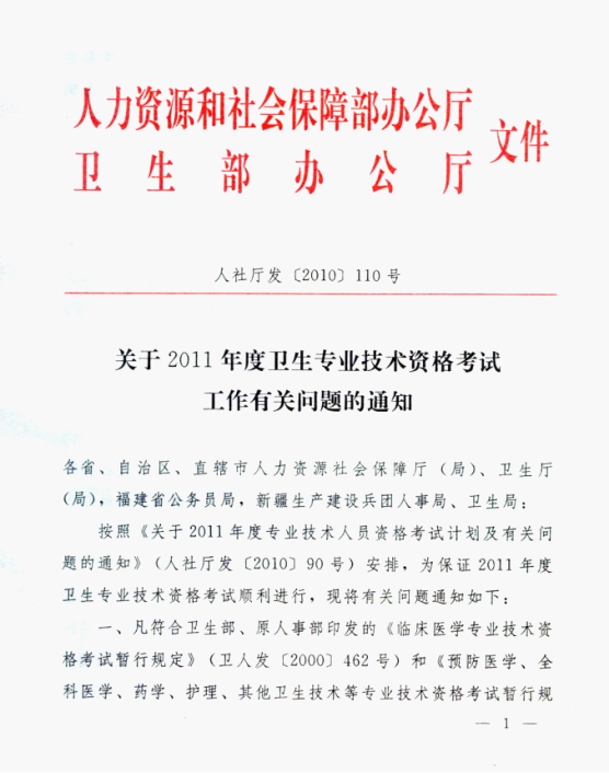 2011年度全国卫生专业技术资格考试安排确定