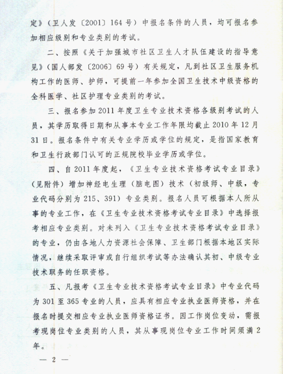 关于2011年度卫生专业技术资格考试工作有关问题的通知