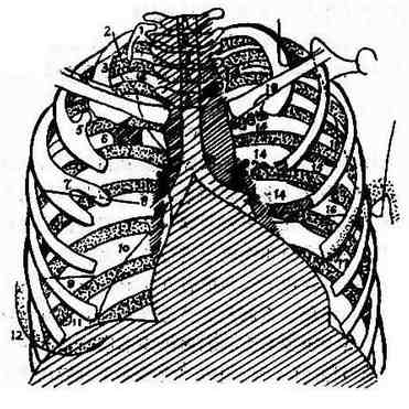 1.颈肋 2 .胸锁乳突肌3. 第一、二肋骨的伴随阴影 4 . 奇叶裂5.肋骨前端骨桥关节形成6.肋骨联合7.叉状肋 8.上中叶间裂(水平叶裂)9.(略)10. 下副叶裂 11.乳头 12 .乳房 13.锁骨下动脉14. 肋软骨钙化 15. 肋骨沟16.左副中叶裂17.胸大肌 18.肩胛骨边缘 19.菱形窝