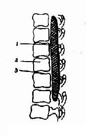 图2-17胸髓碘油造影侧位1.脊髓2.椎体 3.椎间盘