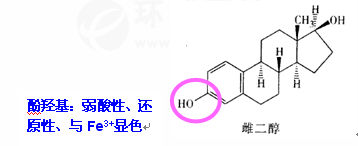 一、雌二醇原料药的鉴别:①与三氯化铁试液的反应:C3-酚羟基②UV:苯环③IR